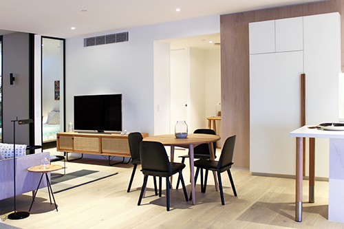 Designed by acclaimed practice Architectus, in collaboration with Singapore based firm WOHA, the suite offers potential buyers the opportunity to experience the luxurious features of the proposed one and two bedroom apartments.