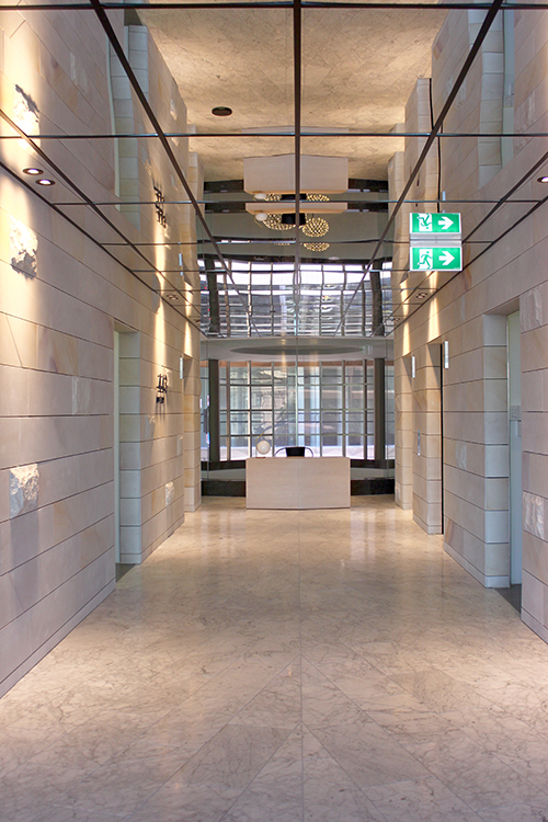 The lavish finishes were carried through to the sales suite front-of-house with elegantly mirrored ceilings, simulated decking, sandstone walls, marble floor tiles and opulent light fittings.