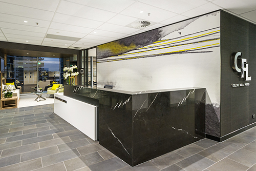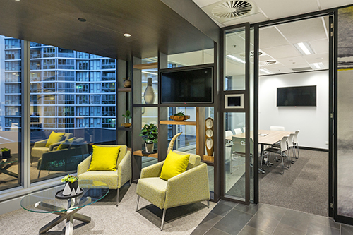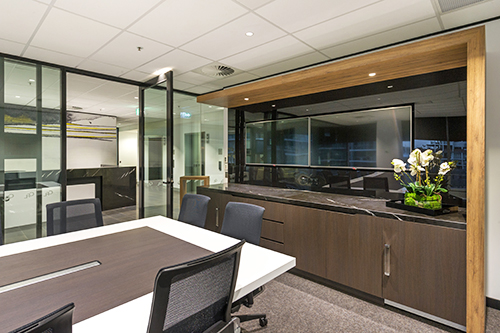 This project on Brisbane’s CBD fringe features a distinguished reception space, more than 100 workstations and extensive AV, electrical and custom joinery requirements – all of which were delivered in a compact timeframe that accommodated numerous long lead time items.